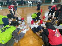 開閉会式では、手をあげて大きな声で返事をしたり、線に沿って行進したりすることをがんばりました。万国旗の色塗りにも意欲的に取り組みました。
