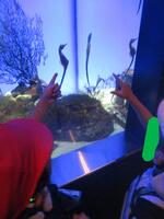 水族館の見学、商店街の散策、もみじ饅頭作り体験をしました。