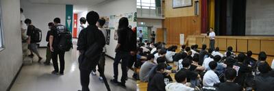 11月26 日(水)生徒会役員選挙立会演説会を行いました。立候補者が抱負や意気込みなどを演説し投票への呼びかけをしました。終了後、各HR教室において投票を行いました。