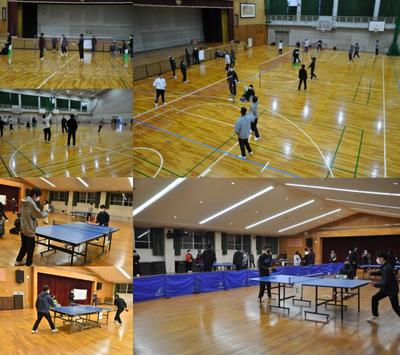 本年度も、昨年度と同様に密状態の回避策として、バドミントン(ダブルス・1チーム3名編成)を体育館にて、卓球(シングルス・1チーム2名前後半交代制)を多目的ホールにて行いました。試合はトーナメント制で、全試合1セット6分間の時間制で2セット行った結果で勝敗を決定しました。
