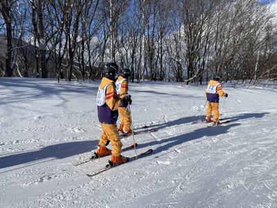 スキー・スノーボードが初めての人が多いなか、慣れない動きに苦戦していました。