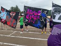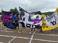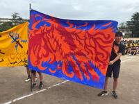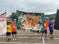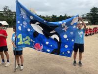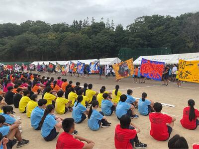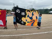 放課後残って一生懸命作成したクラス旗が披露され、開会式を迎えました。