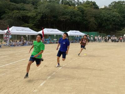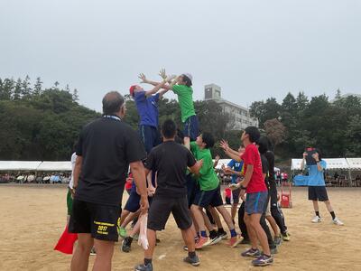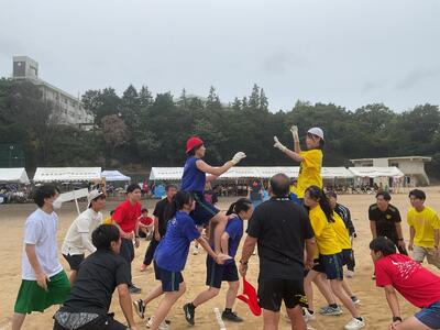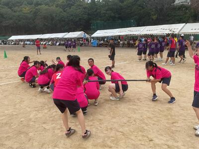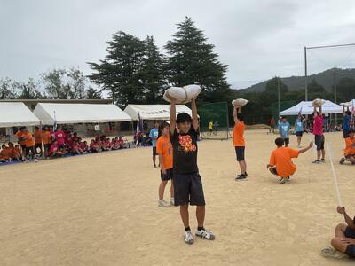 綱引きや騎馬戦、根性根性ど根性(土嚢を持ち上げる対戦行事)など、大盛り上がりでした。