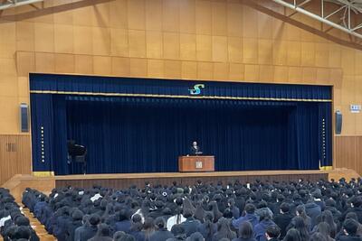 本日、学年集会や制服などの購入のため、新入生が登校しました。