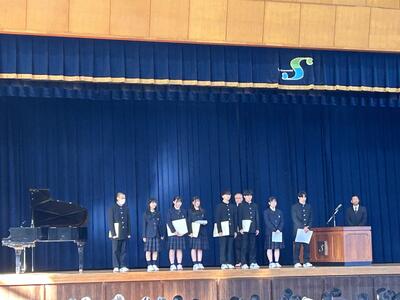 学校長講話、校歌斉唱で式を終えた後、表彰伝達がありました。