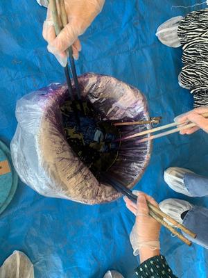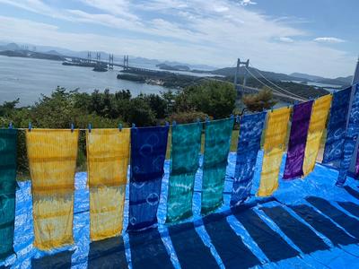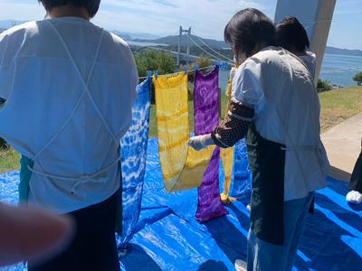 午前中に、鷲羽山ビジターセンターにて、染め物体験をしました。