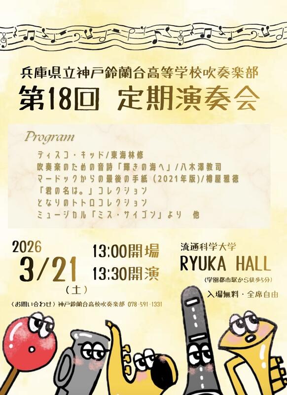♬吹奏楽部第18回定期演奏会のお知らせ♬