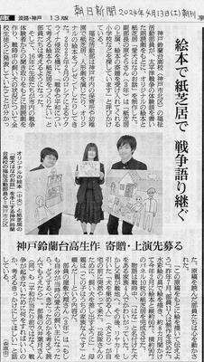 そのとき神戸の戦争体験者の方を取材して作った「愛犬はな の お話」を、当時の生徒会生徒が朗読しました。