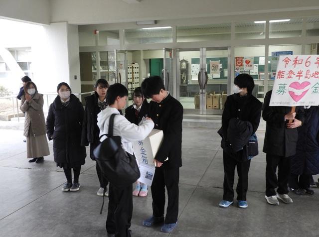 募金は、1月11日(水)の早朝と放課後に、生徒会と福祉活動部の生徒が校内で募金箱を持って、