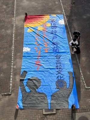 文化委員会の開催や宣伝・CM動画の撮影、書類や異装の点検、ステージ発表のサポート、横断幕の作成など…仕事は多岐にわたり大変でしたが、みんなで協力し一つ一つの仕事に責任を持って一生懸命取り組んでくれました。