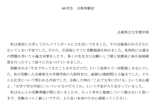 令和3年度卒業生(48回生) 合格体験記(HP版)はこちらから===48回生 HP版 合格体験記.pdf