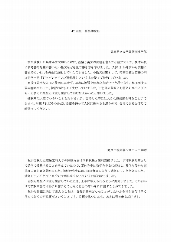 令和4年度卒業生(49回生) 合格体験記(HP版)はこちらから === 49回生 合格体験記.pdf