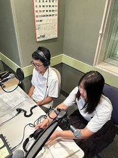 9/14(土)放送部7名でFMゲンキさんに研修会へ行きました。これは昨年度から進めている香寺文化協会主催の「語り部QR」の一環として、よりよい発声の仕方を学ぶためにラジオ局を訪れました。プロの方が生放送をしている姿を横目に、準備体操、発声練習の後、収録を行いました。スタジオに入るだけで緊張する!そして収録となると、いつも以上にうまく発声できない!そんな経験をしつつ、無事収録を終えました。今後の放送部の活動に活かしていきたいです。