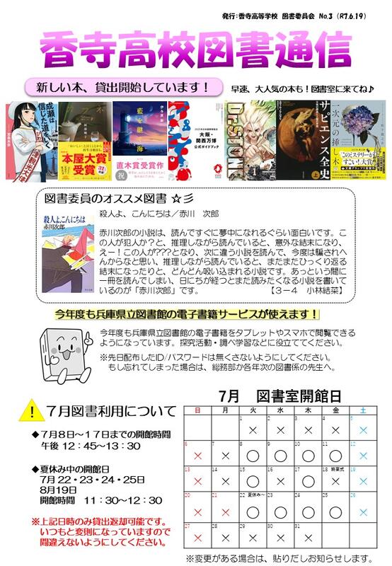 令和7年度 香寺高校図書通信 第7号を掲載します。