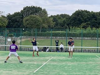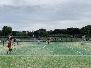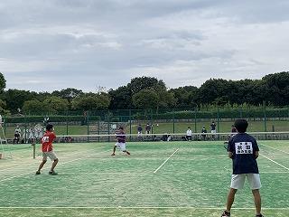1年生4人が入部し、1~3年での初めての大会となりました。ペアでできることを模索し、2人でポイントをとることを目標に練習してきました。個人戦では1ペアを残し、敗退してしまいましたが、自分たちのテニスをすることができ、1日後の団体戦へと気持ちを切り替えました。