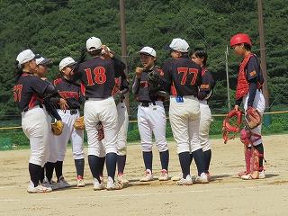 8/5に丹波市で開催された県民大会に参加しました。新チーム初の公式戦となる本大会初戦は武庫川女子大学附属高等学校と対戦しました。先制点を入れられ、すぐに追いついたものの更に追加点を許し、1-2の試合展開の中、逆転のチャンスを狙っていました。しかし、5回裏で6点を許し5回コールド負けとなりました。試合中盤まで競ったゲームができたことは、ひとつ自信となりましたが、終盤、耐えきることができませんでした。この結果を真摯に受け止め、次の西播夏季リーグ戦へと繋げたいと思います。