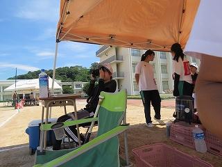 リレーでは、女子バスケ部とトップ争いの末、ヘッドスライディングでゴールしました。