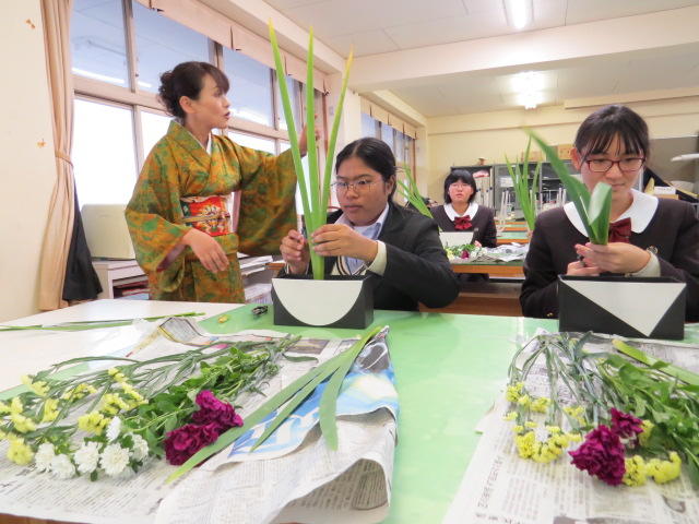 【華道部】タイ王国からの交流生と活動しました