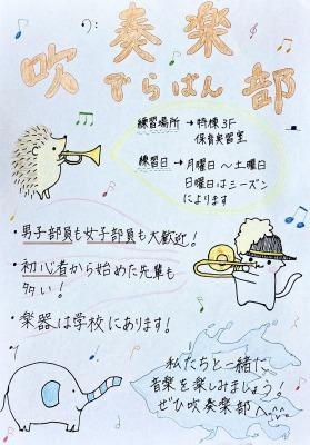 連絡先:吹奏楽部顧問(学校へお電話を)