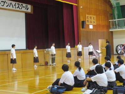 終業式では校長先生より講話がありました。その後表彰伝達式、生徒指導部長のお話がありました。