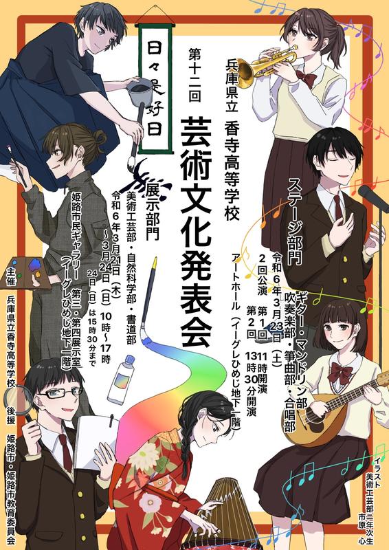 香寺高校では、毎年3月に芸術文化発表会を行い、広く市民の皆様方に本校の学習活動(授業・文化部の活動)の成果を披露させていただいています。