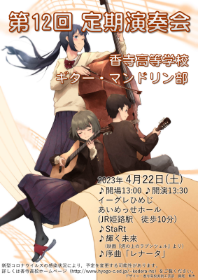 香寺高校ギター・マンドリン部は,今週末4月20日(土),定期演奏会を開催します。