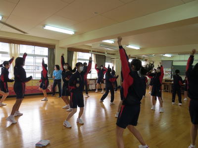 11月17日「保育技術Ⅰ」、11月25日「保育技術Ⅱ」の授業にリフレの濱西先生、木南先生、上田先生に来ていただきました。将来の集団保育の指導が楽しくスムーズにできるように、体操やリズムダンスの基本的な振り付けを指導していただきました。
