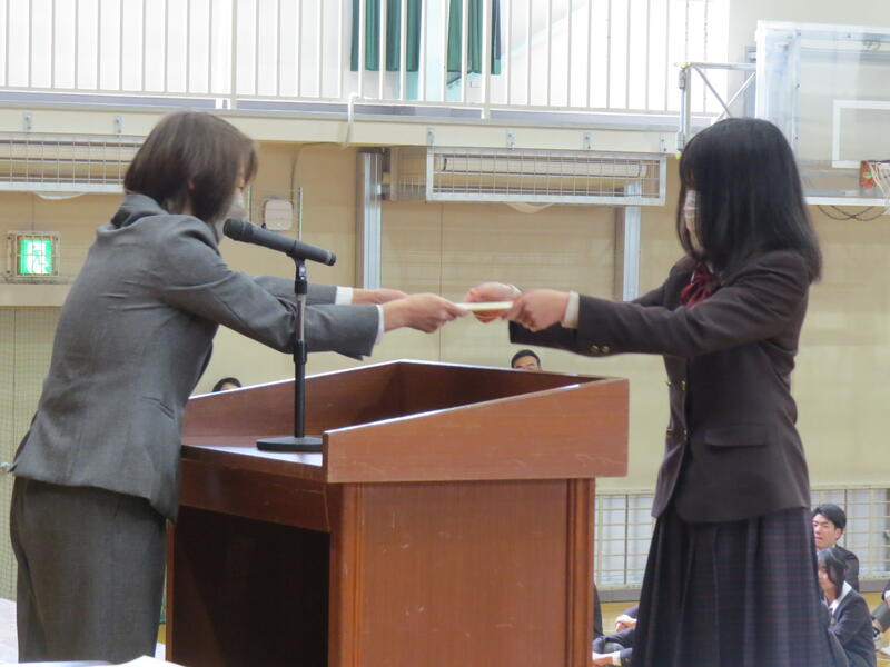 終業式では校長先生より講話がありました。その後表彰伝達式、生徒指導部長のお話がありました。