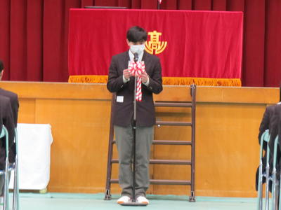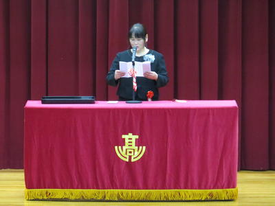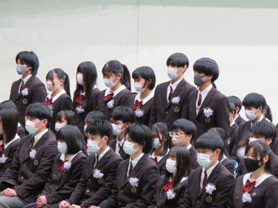2月28日(火)PTA会長龍田善美様、同窓会長木村忠彦様をはじめご来賓の皆様、保護者の皆様にご臨席いただき、第49回卒業証書授与式が行われました。在校生も見守る中、188名の卒業生が笑顔で巣立っていきました。