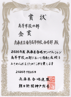 2020年度 兵庫県合唱コンペティション に出演しました。