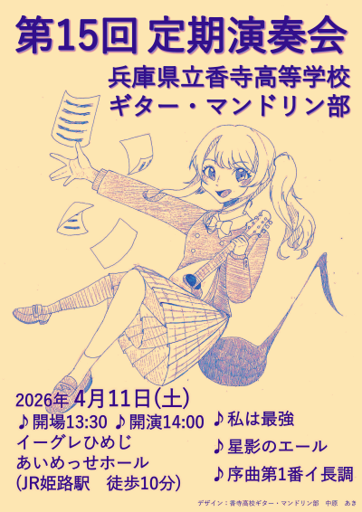 香寺高校ギター・マンドリン部 第15回定期演奏会を開催いたします。