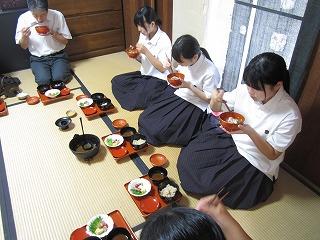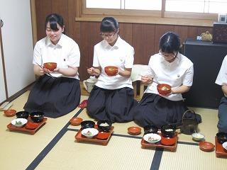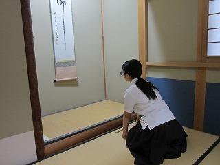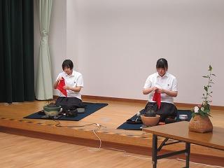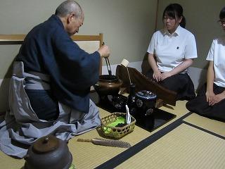 茶道部は、現在2年次女子3名、1年次女子6名の計9名で、毎週木曜日に裏千家茶道講師の清瀬宗雄先生にご指導いただいています。