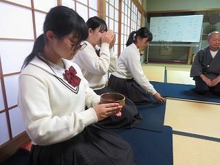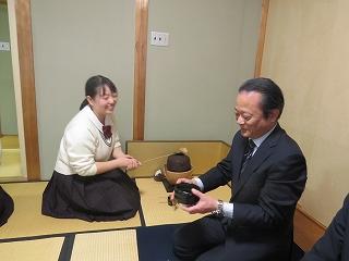 10月31日(木)、作法室で『感謝の茶会』を開きました。先日の研鑽会(県大会)で念願の優秀賞を獲得することができたのは、多くの方々にお力をお貸しいただいたおかげだと感謝しております。その気持ちを伝えるために、校長先生をお招きして『感謝の茶会』を開かせていただきました。