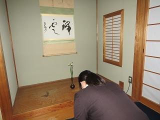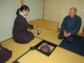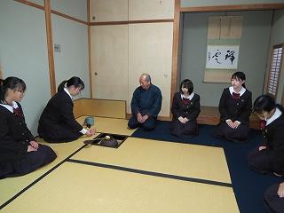 1月9日(木)、新春恒例の「初釜」を行いました。ごぼうと白味噌餡とピンク色の餅を、求肥で包んだ花びら餅をいただき、新年を祝いました。