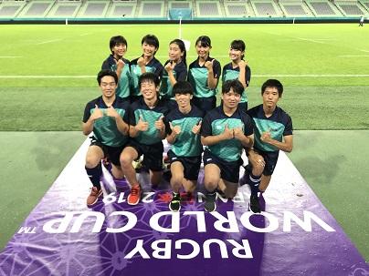 ラグビー部男女20名が現在開催されているラグビーワールドカップで、神戸開催4試合のボールパーソン(ピッチサイドでボールの管理を行う)を担当しました。
