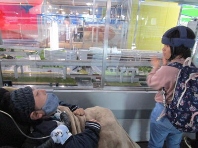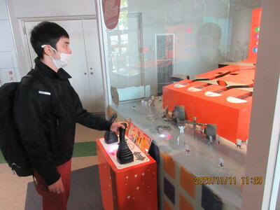 高等部2年生は11月11日(火)に校外学習でカワサキワールドを訪れました。館内では、バイクや自動車だけでなく、新幹線、飛行機、ジェットスキーなど、さまざまな乗り物に触れることができました。特に人気だったのは、新幹線の運転席と車掌席です。客席よりも高い座面から見える景色に、生徒たちは大興奮でした。「運転席に上がるまでが大変!」「高くてちょっと怖い!」といった声も聞かれ、普段体験できない貴重な時間となりました。