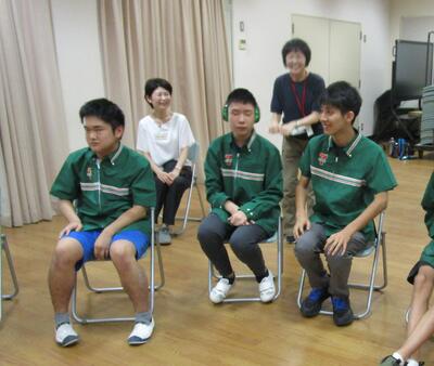 9月30日、「心のバリアフリー推進事業 職業体験」として、セブンイレブンの方をお招きし、仕事の心構えや挨拶の仕方などを学びました。セブンイレブンの制服を着て、大きな声で挨拶の練習をしました。他にケミカルキャップ作業や机拭きなどの軽作業も併せて練習しました。