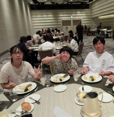 胸を躍らせながら新幹線に乗り込み、一日目は『東京スカイツリー』と『浅草寺』を観光しました。地上350mの天望デッキから東京の景色を楽しんだり、浅草仲見世通りで食べ歩きをしたりと満喫することができました。夕食はホテルにて、フランスのコース料理でテーブルマナー体験をしました。