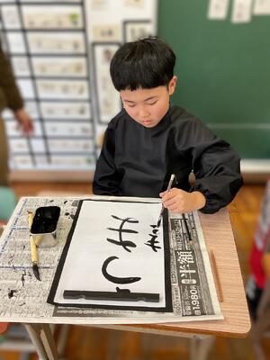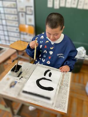 新年が明けましたので、1月13日(火)に小学部4年生で書初めをしました。今年の干支である「うま」という字と、好きな言葉を書きました。各々思うがまま筆を運び、みんな上手に書くことができました!