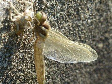 一覧へ 47回生_20200430掲載(トンボの羽化) 投稿日時: 2020/04/30 47回生 中庭の池で、たくさんのトンボが羽化しています。上から順番(数匹分の写真)になっています。初めは薄い緑色の羽(2枚目)が徐々に透明の羽(3枚目)になっていくのが、わかります。