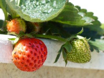 学校で栽培しているイチゴです。もう少ししたら真っ赤なると思います。