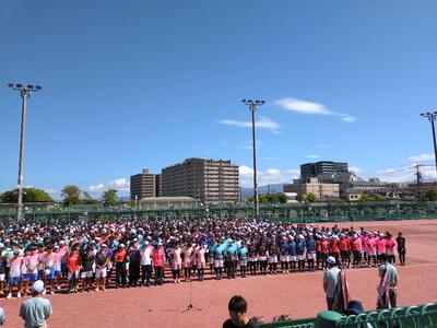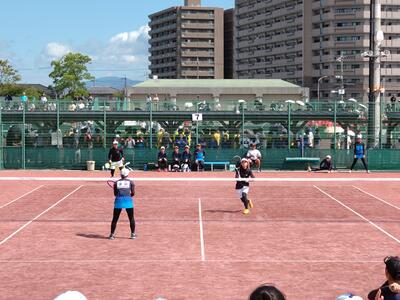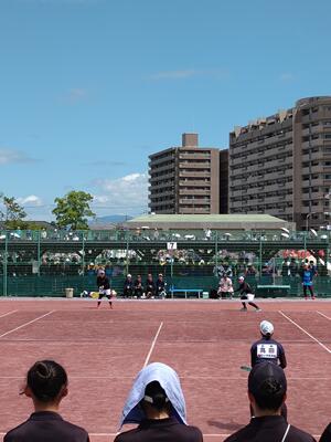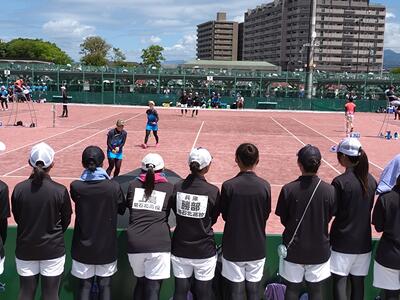 7月に長浜城テニスガーデンで開催された近畿大会(団体戦)に出場してきました。結果は初戦敗退となりましたが、夢の舞台で思いっきりテニスを楽しんできました。3年生にとっては引退試合となり、試合後は最後のミーティングを行いました。3年生は後輩、保護者が見守る中、3年間続けてきた部活動への思い、チームメイト、顧問への感謝の気持ちなどを述べ、温かい雰囲気で部活動を締めくくることができました。保護者の皆さまには遠方まで応援に駆けつけてくださり、感謝しております。ありがとうございました。