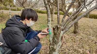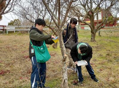 2026年1月31日(土)・2月1日(日)の2日間に、本校科学探究部生物班の生徒7名および有志生徒6名、計13名が、特定外来生物であるクビアカツヤカミキリの調査を石ヶ谷公園の梅園で実施しました。