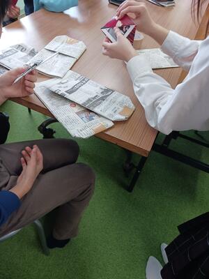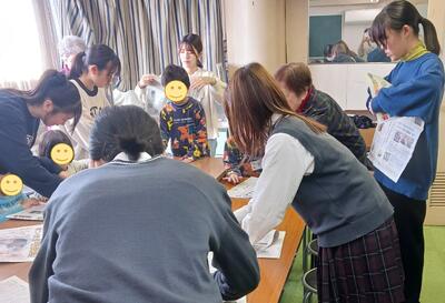 ボランティア部は公益財団法人こども財団のご協力のもと、明石市内のこども食堂で活動しています。 令和8年1月17日(阪神・淡路大震災から31年)は防災ジュニアリーダーや有志の生徒も参加し、朝霧の「あったか食堂ほっとホット」で交流を行いました。スタッフのみなさまの震災体験をお聞きした後、こどもたちと一緒にアルファ化米の試食や防災グッズ(新聞紙スリッパと紙食器)づくりに取り組みました