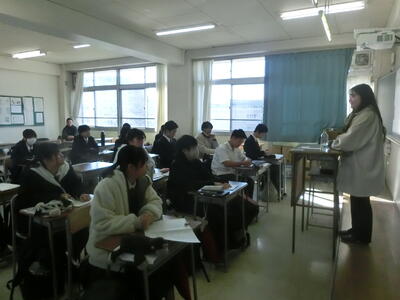 Next, Professor Koichi Yamashita from the Faculty of International Human Sciences gave a mock lecture titled "Interaction between Globalization and Education - Social Development and Individual Growth". Afterwards, he introduced the Faculty of International Human Sciences at Kobe University.