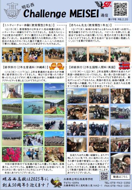 The 19th Hyogo Prefecture Senior High School English Debate Contest was held at Kobe City University of Foreign Studies on February 1, 2026. The Akashi-Nishi debate team from the 2nd-year DGA participated in the contest. There were three preliminary rounds in the morning. In the first round, the Akashi-Nishi team debated against the seeded Kobe Senior High School and lost with a score of 0-3. In the second round, our team debated against Mukogawa Women’s University Senior High School and won with a score of 3-0. In the third round, the Akashi-Nishi debate team defeated Himeji Nishi Senior High School with a score of 2-1. Ultimately, the team was unable to advance to the semi-finals, finishing in 12th place among 22 teams. The debate team members and supporters did their best. They came in third place in terms of the ‘English Communication Point,’ which reflected how clear and understandable the English of our debate team was.