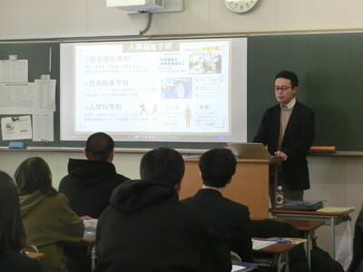 Next, Professor Koichi Yamashita from the Faculty of International Human Sciences gave a mock lecture titled "Interaction between Globalization and Education - Social Development and Individual Growth". Afterwards, he introduced the Faculty of International Human Sciences at Kobe University.