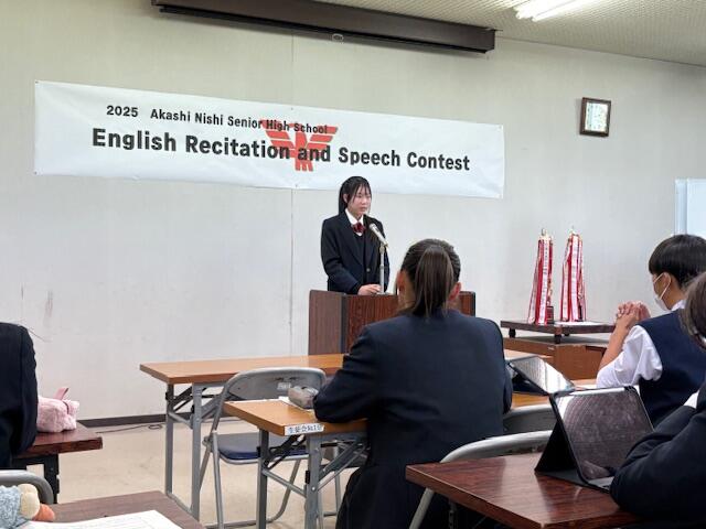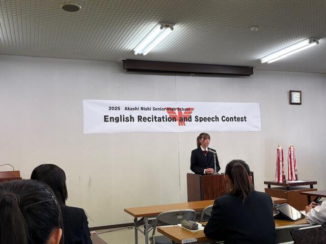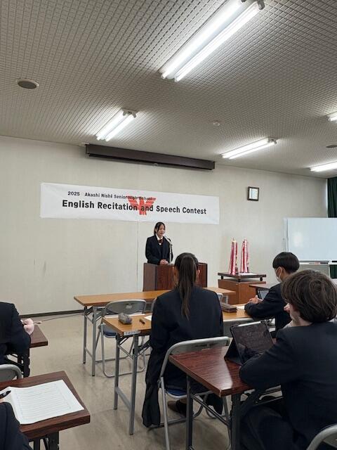 On November 7, 2025, the English Recitation Contest for the 1st-year students of the DGA was held in the 5th period at School Alumni Hall (Kisho Kaikan). Finalists and guest speakers including an international student from Belgium, Loic, made wonderful speeches. The students who won the 1st, 2nd, 3rd and 4th places were awarded on November 21 at the principal's room.