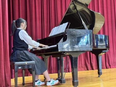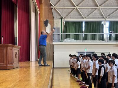 最後は11月の50周年式典に向けて音楽の福田先生に校歌の歌唱指導をしていただきました。
