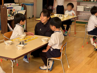 今年度3回目の訪問ということもあり、生徒たちはリラックスした表情で園児たちと接していました。